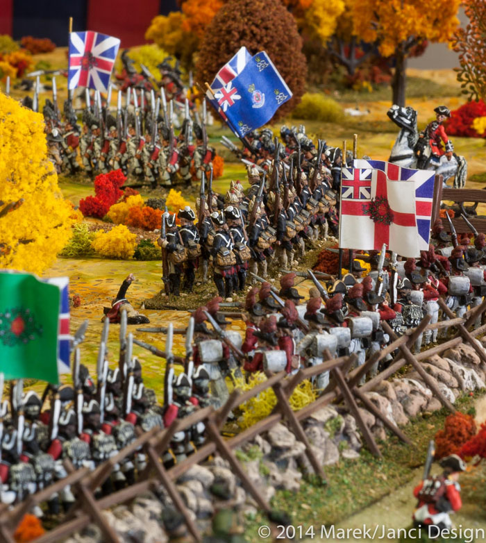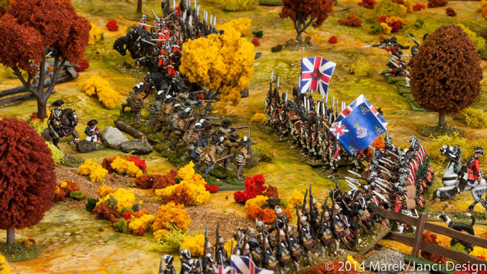 The battle of Guilford Courthouse (fictional Fall Season setting) has reached a half-way point, so we will continue the battle tomorrow evening. All commands are full…unless a player from last week can’t attend thus there’d be an opening (or one can take over my command, and I’d run the rules). Or Bill possibly would allow extra players to play the Command and Colors: Ancients game?