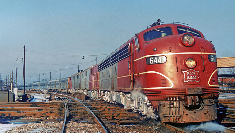 December 15, 1959, the westbound Rocky Mountain Rocket stopped at Englewood station Richard Neumiller photo. Bon French collection.
