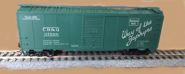This CBQRR box car is a model of one painted Green for display at the 1949 Chicago Railroad show.